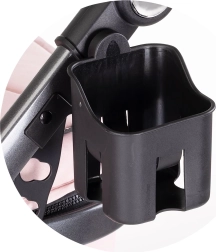 De wandelwagen wordt geleverd met accessoires zoals een tas voor accessoires, een flessenhouder en een voetenzak.