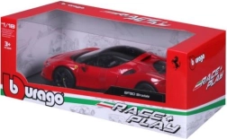 Het model draagt de officiële FERRARI-licentie en is verpakt in een aantrekkelijke BBURAGO Race & Play-doos met doorkijkvenster – ideaal als cadeau voor fans van snelle auto’s.
