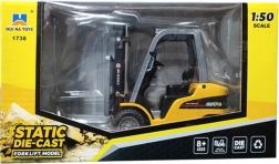 Het heftruckmodel in schaal 1:50 is een nauwkeurig vervaardigde miniatuur die een echt magazijnvoertuig getrouw nabootst. Dankzij het gebruik van een hoogwaardige metalen legering en duurzaam plastic kenmerkt het model zich door een stevige constructie, oog voor detail en een realistische uitstraling.
