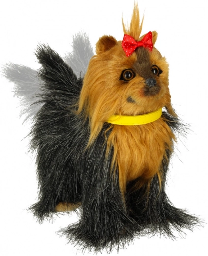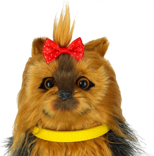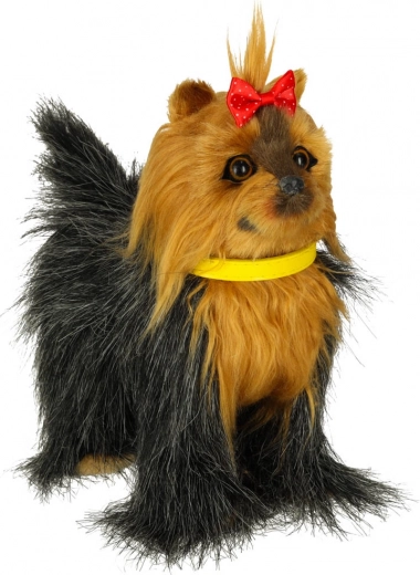 De interactieve hond York is een geweldige vriend voor elke kleine ontdekkingsreiziger. Hij heeft een zacht en aangenaam bontoppervlak dat een echte Yorkshire terriër nabootst. Dankzij de opvallende details en levensechte interactieve functies trekt hij snel de aandacht van kinderen. Een rood strikje en een geel halsbandje voegen nog meer realisme en charme toe aan het speelgoed.