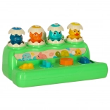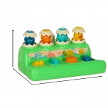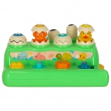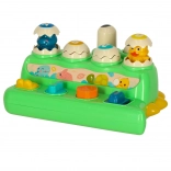 Dit interactieve spel dat plezier biedt, combineert elementen van vaardigheid, educatie en beweging. De taak van het kind is eerst om op de speciale knop te drukken waardoor een dier springt, daarna het met de hamer terug te slaan. Kinderen vermaken zich en leren geduld en concentratie.