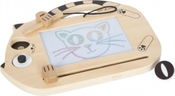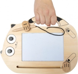 Het magnetische tekenbord Kat is ontworpen om kinderen te boeien met zijn speelse vorm en tegelijk hun creativiteit te stimuleren. Met de tekenpen die met een koordje is vastgemaakt en klaar voor direct gebruik, kunnen kinderen op elk moment nieuwe tekeningen maken.