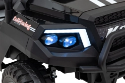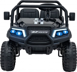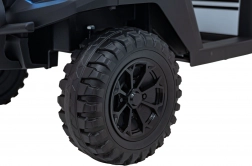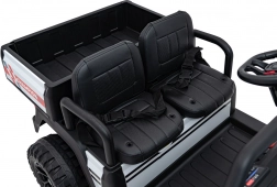 Robuuste elektrische offroad pick-up voor kinderen met 2x200 W aandrijving en een 24V 9Ah accu voor veel plezier in het terrein. Biedt twee zitplaatsen van eco-leer, EVA-schuimbanden voor stille ritten, voor- en achter-LED-verlichting, een uitgebreide audiopaneel met FM, MP3 en Bluetooth en 2,4 GHz afstandsbediening met een veiligheidsknop STOP. Draagvermogen tot 60 kg en een grote achterste laadruimte voor speelgoed.