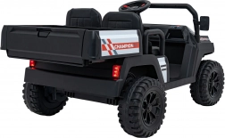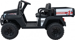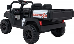 De krachtige elektrische pick-up CHAMPION in opvallend zwart is gemaakt voor avontuur. Twee motoren van 200 W (totaal 400 W) in combinatie met een 24V 9Ah accu leveren vermogen, ook op licht terrein, terwijl EVA-schuimbanden en volledige vering voor en achter comfort en stabiliteit bieden. Geleidelijke start, 2 snelheden vooruit en achteruit maken het besturen eenvoudig voor beginners.