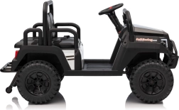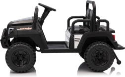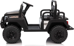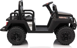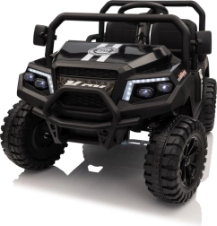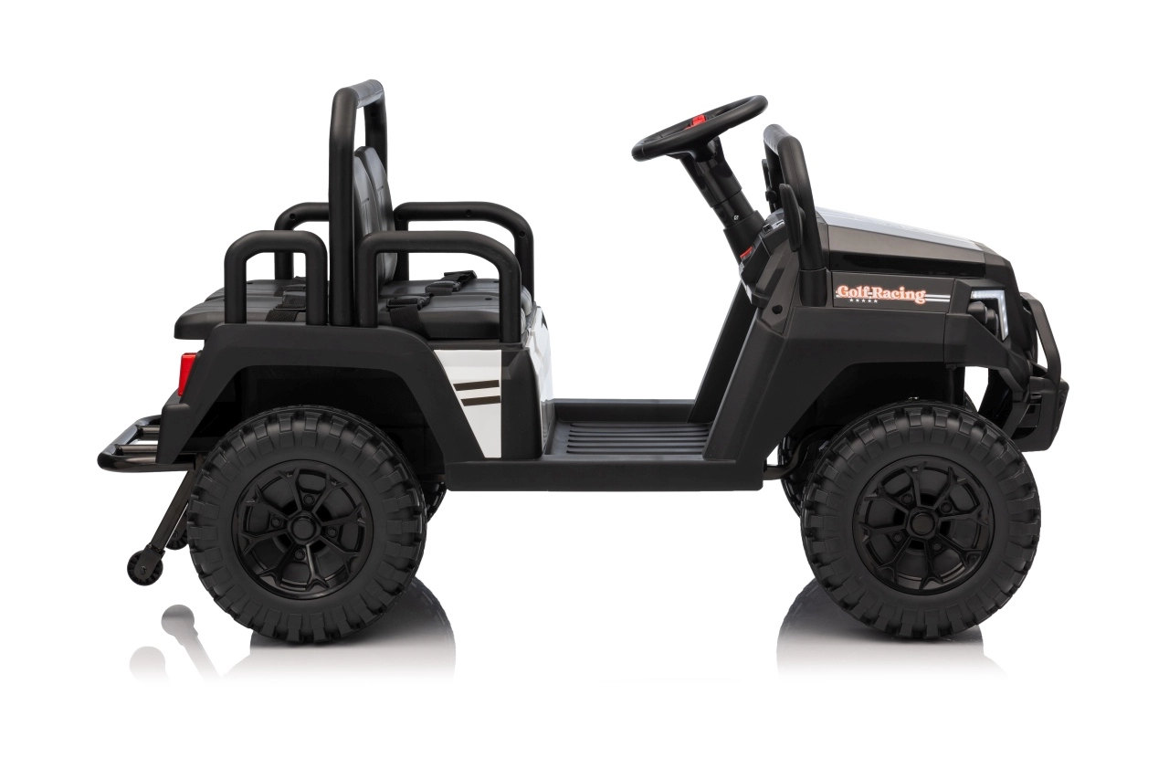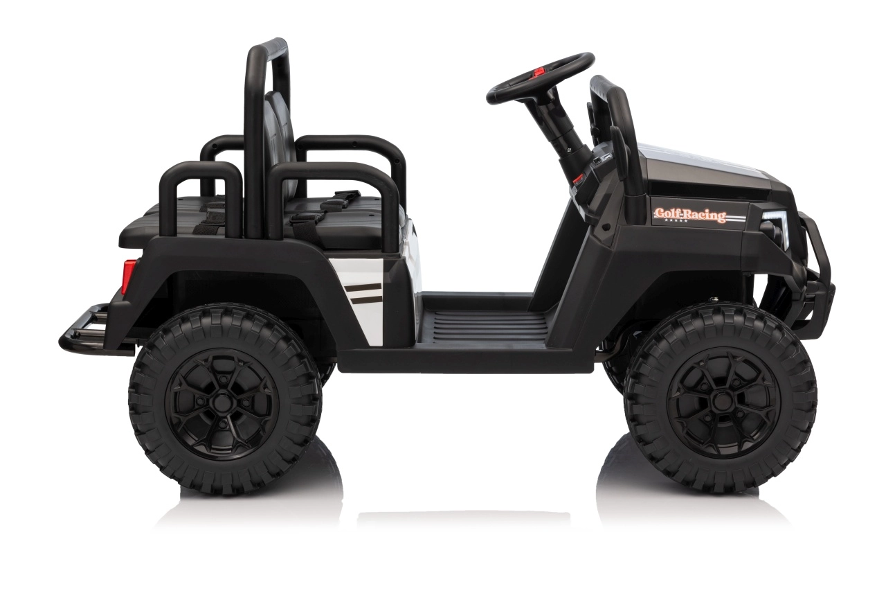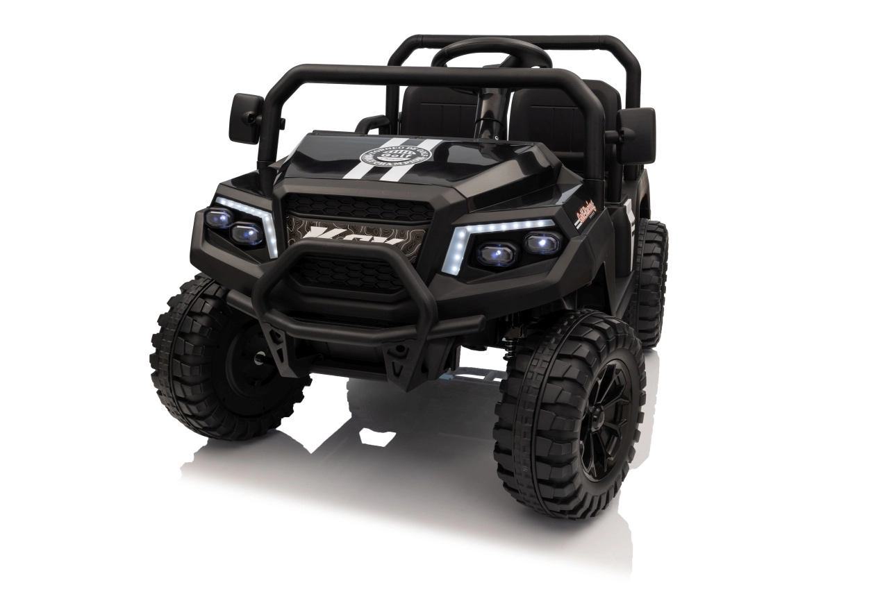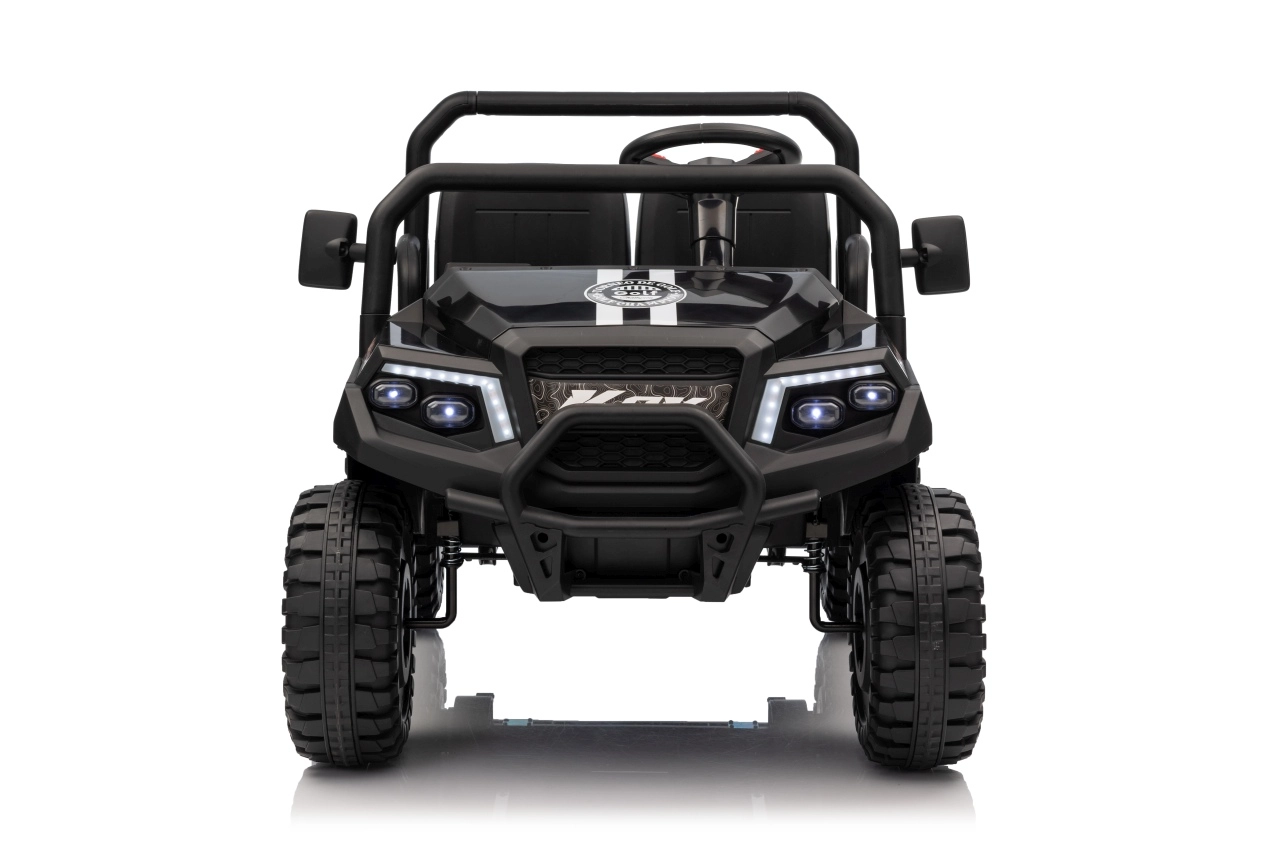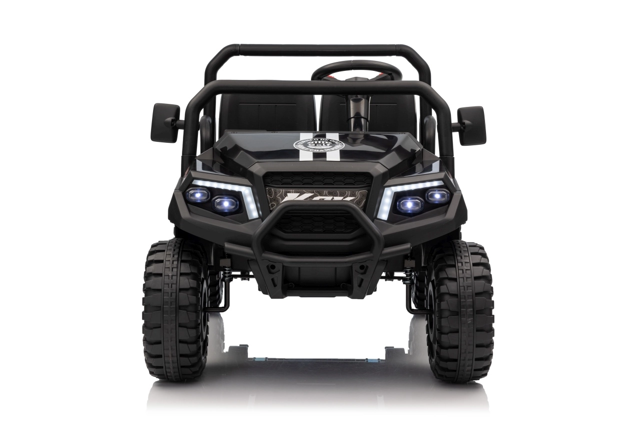 Ouders waarderen de 2,4 GHz afstandsbediening met drie snelheden en de Stop-veiligheidsknop, waarmee ze de rit van de kinderen onder controle houden. Kinderen genieten van de soepele start, LED-verlichting voor en achter met schakelaar en de rijke uitrusting van het audiopaneel: FM-radio, MP3, Bluetooth, USB, claxon en geluidseffecten op het stuur.