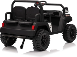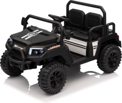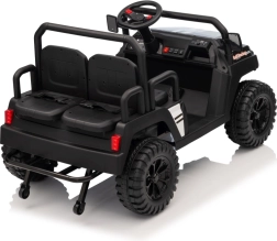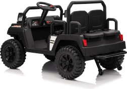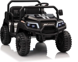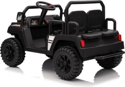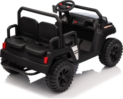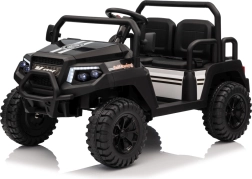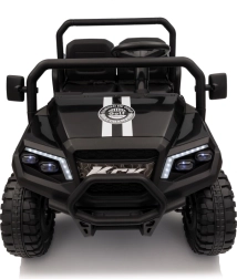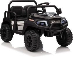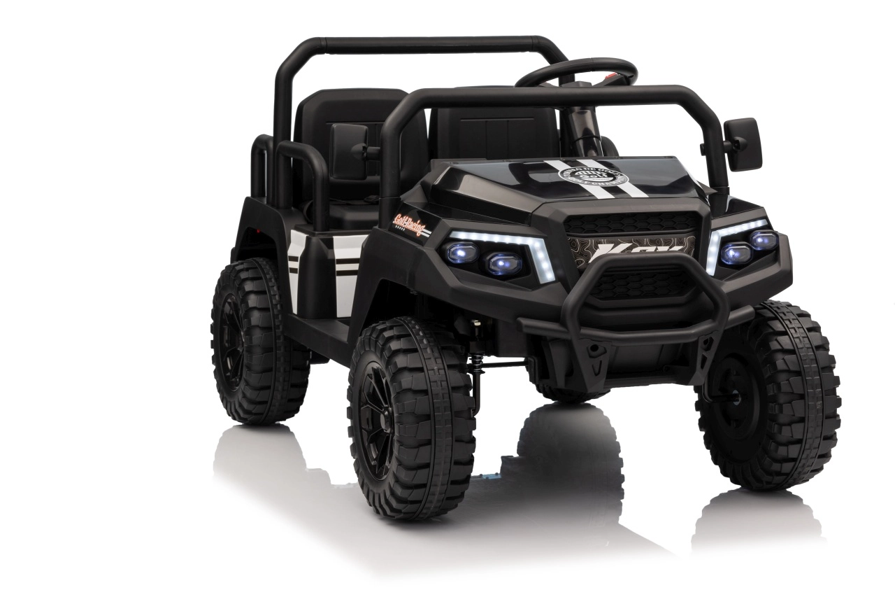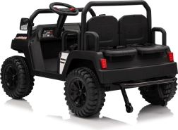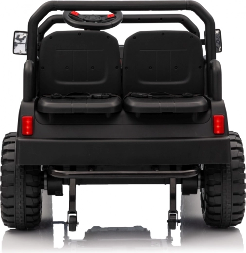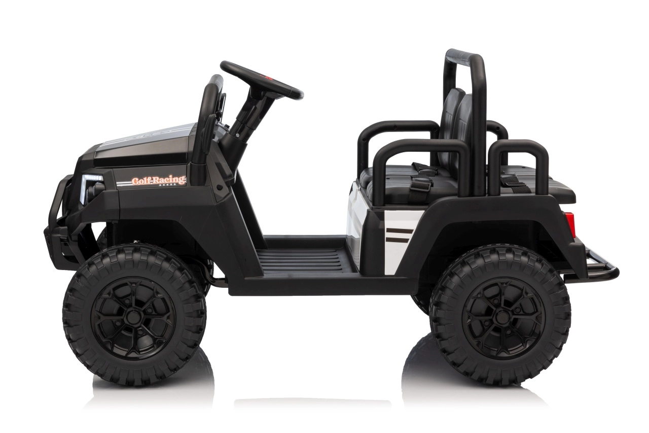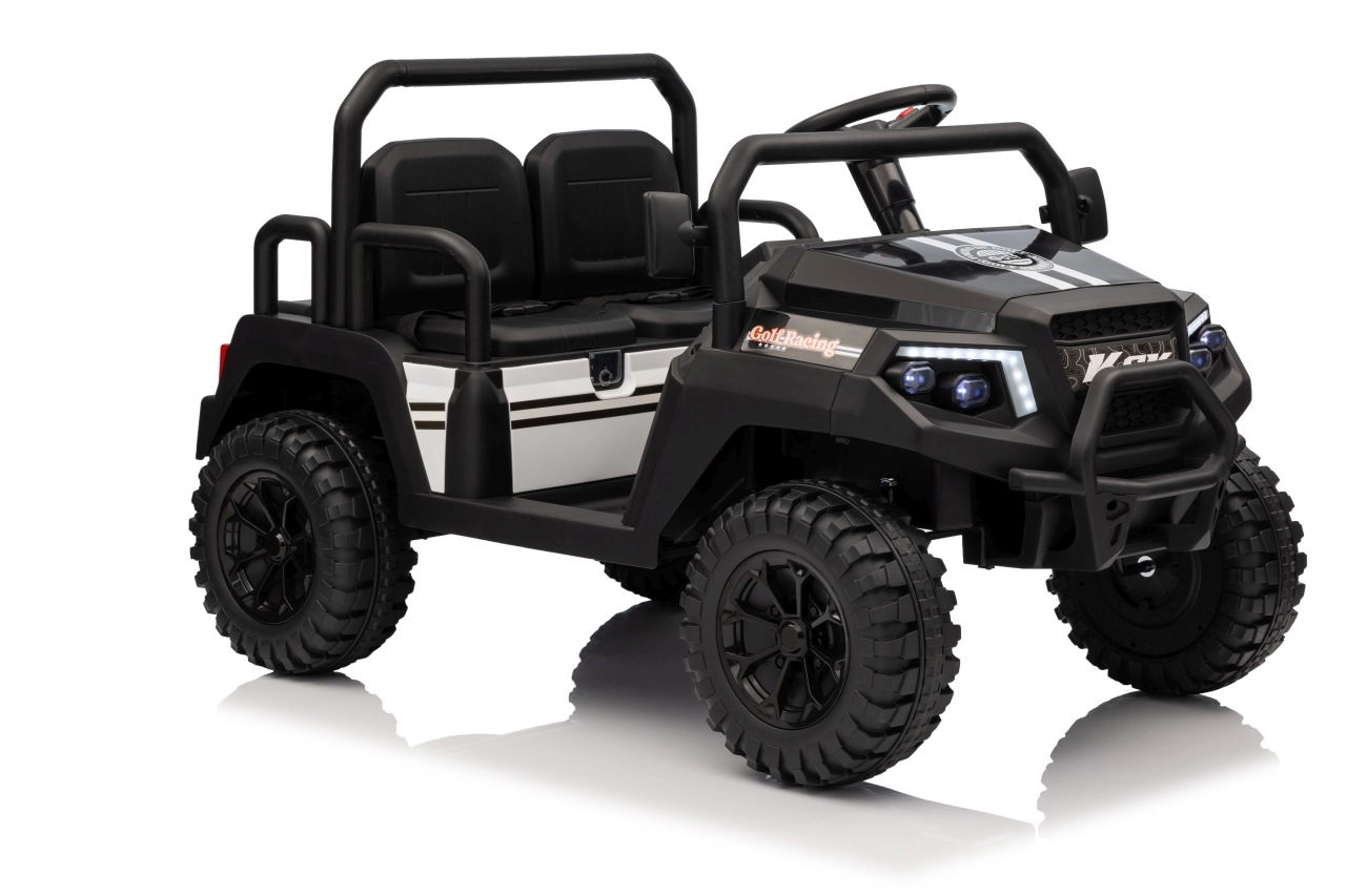 De vierzits elektrische buggy Champion in elegante zwarte kleur is gemaakt voor gezamenlijke avonturen. Dankzij de 2×200 W aandrijving en de 24 V / 9 Ah accu biedt hij voldoende kracht, ook buiten verharde wegen. De grote EVA wielen 29×12 cm en voor- en achtervering zorgen voor comfortabel en stabiel rijden.