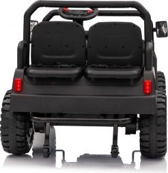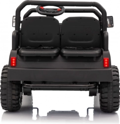 Het interieur is ontworpen voor vier kleine bestuurders: 4 stoelen van eco-leer met gordels (25×21×20 cm) bieden comfort en ondersteuning. De hoge bodemvrijheid van 19 cm, duurzame EVA-wielen 29×12 cm en vering dempen oneffenheden. De maximale belasting van 120 kg betekent veel plezier voor broers, zussen en vriendjes.