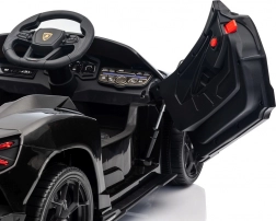 Stijlvolle en veilige kinderauto geïnspireerd op de iconische LAMBORGHINI. Voorzien van een 12 V 9 Ah accu, 2× motoren (afhankelijk van versie), zachte EVA-wielen, lederen zitje van ecokunstleer, 2,4 GHz afstandsbediening met noodknop Stop, LED-verlichting en openslaande deuren in scissor-stijl.