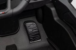 Comfort wordt verzekerd door het zachte zitje van ecokunstleer met veiligheidsgordel, stille EVA-wielen 19×8 cm en achtervering. Voor vermaak zorgt het audiopaneel met MP3/Bluetooth/USB/AUX en FM-radio, geluidseffecten en claxon in het stuur en een praktische batterijstatusindicator. LED-verlichting en de iconische opklapdeuren maken het instappen eenvoudig.