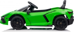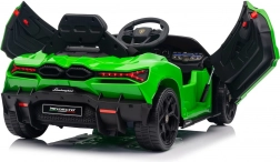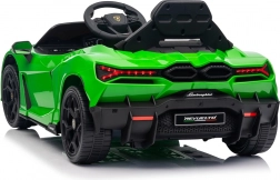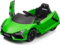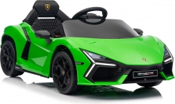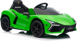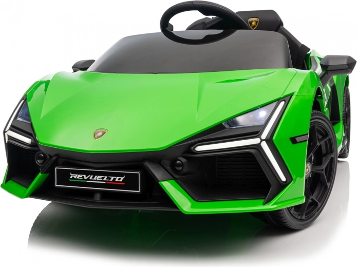Stijlvolle elektrische kinderauto in de stijl van de LAMBORGHINI Revuelto met een 12V 9Ah accu, twee motoren, EVA-wielen en 2,4 GHz afstandsbediening met STOP-knop. Verder met geleidelijke start, LED-verlichting, openende deuren en een multimediapaneel met Bluetooth/USB/FM/MP3 voor maximaal plezier.