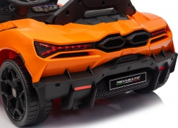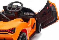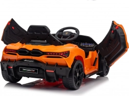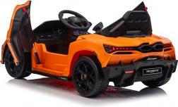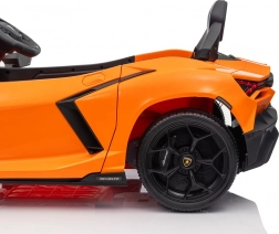 De stijlvolle elektrische kinderauto van LAMBORGHINI brengt het iconische Revuelto-design in een compacte en veilige vorm voor jonge bestuurders. Twee motoren tot 2×45 W (ook variant 2×35 W) zorgen voor een soepele start en twee snelheden vooruit en achteruit, terwijl de achtervering oneffenheden dempt.