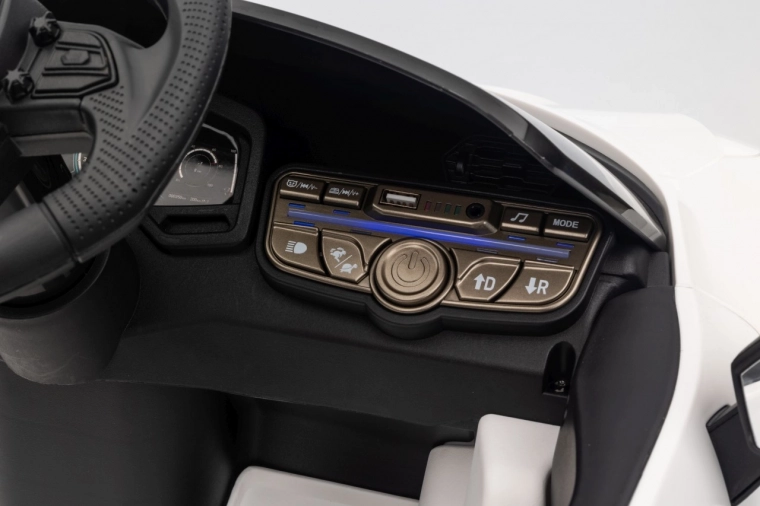 De 2,4 GHz ouder-afstandsbediening met keuze uit 3 snelheden en STOP-functie biedt volledige controle. Kinderen genieten van het multimediapaneel met Bluetooth, MP3, USB en FM-radio, claxon en geluiden in het stuur. Openslaande deuren, een stoel van eco-leer en veiligheidsgordels benadrukken de premium ervaring.