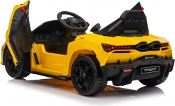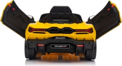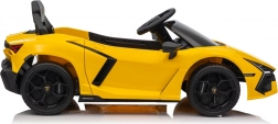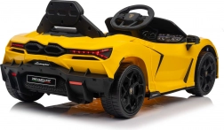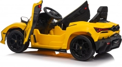 Vervul de kindersdroom van rijden in een supercar met de gelicentieerde LAMBORGHINI Revuelto in opvallend geel. De elektrische kinderauto biedt 2 motoren, een 12V 9Ah accu, zachte EVA-wielen, een lederen zitje met gordels en 2,4 GHz afstandsbediening voor veilig rijden onder ouderlijk toezicht. Inclusief LED-verlichting, openende deuren en een multimediapaneel met Bluetooth, USB, MP3 en FM-radio.