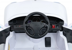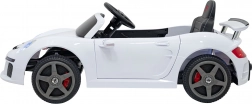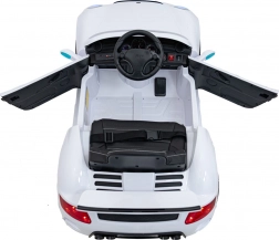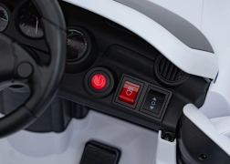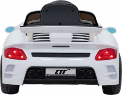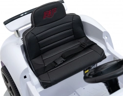 De elektrische kinderauto RUF CTR3 in elegant wit combineert een aantrekkelijk design met doordachte veiligheidsfeatures. Dankzij de vloeiende start en rijden vooruit/achteruit is de bediening natuurlijk en comfortabel. Zachte EVA-wielen in combinatie met achtervering zorgen voor een comfortabele rit, zowel binnen als buiten.