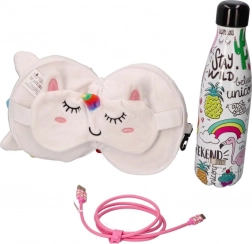 Geniet van comfort op elke reis met dit schattige reiskussen met masker in de vorm van een unicorn. Het kussen biedt aangename neksteun en het oogmasker helpt licht te blokkeren voor ongestoorde rust in auto, vliegtuig en trein.