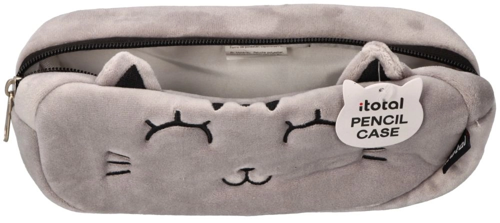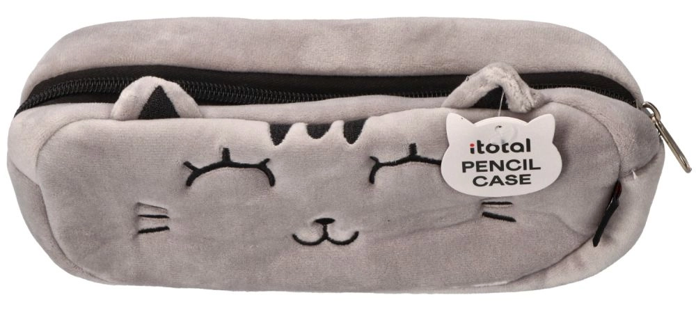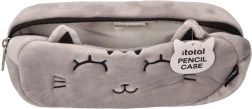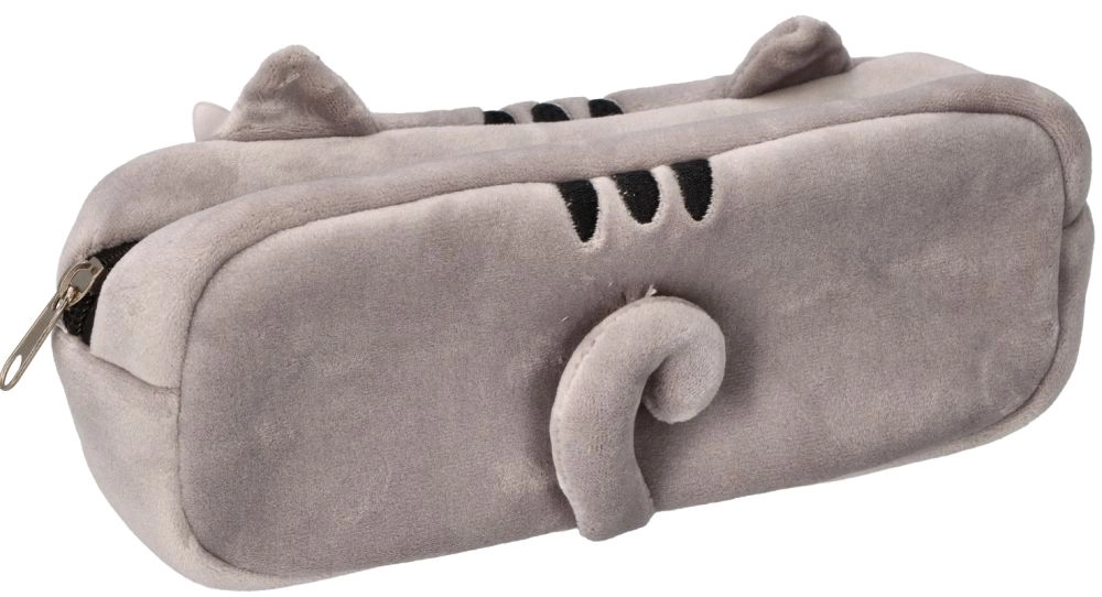 Deze grijze pluchen etui met kattendesign valt op door het zachte materiaal, geborduurde details en schattige oortjes. Dankzij de compacte afmetingen past hij gemakkelijk in een schooltas en de betrouwbare rits houdt je schrijfwaren veilig bij elkaar.