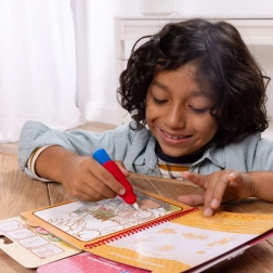 Vul de meegeleverde pen met water en zie hoe fruitmotieven direct inkleuren – zonder vlekken en zonder opruimen.