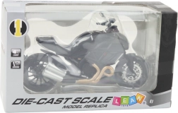 Dit nauwkeurig uitgewerkte model combineert een robuuste metalen body met kunststof details, waardoor realistische lijnen, uitlaten, schijven en een getextureerd zadel mooi uitkomen. Geïntegreerde verlichting en geluid (3× AG13, inbegrepen) versterken de beleving tijdens het spelen en op de standaard.