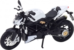 Ontdek een hoogwaardig verzamelmodel dat zowel kinderen als volwassen liefhebbers van twee wielen zal bekoren. De metalen body, zorgvuldig uitgewerkte onderdelen en sportieve look geïnspireerd op racemachines geven het model een authentiek karakter. Licht- en geluidseffecten op 3× AG13-batterijen (meegeleverd) versterken de beleving tijdens het spelen en tentoonstellen.