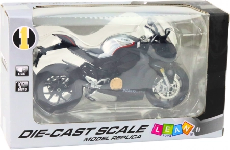 Realistisch metalen model van een sportmotor op schaal 1:12 zal zowel verzamelaars als kinderen aanspreken. Biedt licht- en geluidseffecten, draaibare wielen, stuurbare stuurinrichting en geveerde vering. Degelijke metalen constructie met kunststof details en een elegant zwart design geïnspireerd op racemachines voor een authentieke speelervaring en een stijlvol pronkstuk op de plank.