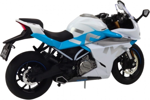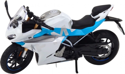 Een realistisch metalen model van een sportmotor op schaal 1:12 dat zowel kinderen als verzamelaars zal aanspreken. Biedt een metalen constructie, gedetailleerde afwerking, licht- en geluidseffecten en functionele elementen zoals draaibaar stuur, vering en vrij draaiende wielen. Het stijlvolle wit‑blauwe race‑design springt in het oog in de vitrine én tijdens het spelen.