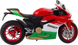 Metalen model met een driekleurig design (rood, wit, groen) geïnspireerd op Italiaanse racemotoren, uitblinkend in authenticiteit.
