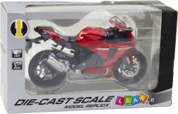 Het model is uitgerust met licht- en geluidseffecten, geactiveerd door 3x AG13 (inclusief batterijen). De toegevoegde functies verhogen het realisme van het spel, waardoor de motorfiets eruitziet en klinkt als een echte machine. Dynamisch sportief design in rode kleur is geïnspireerd door klassieke race-motorfietsen.