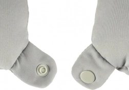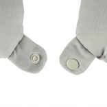 Het kussen is compact en past gemakkelijk in elke bagage. U kunt het eenvoudig aan uw bagage bevestigen dankzij de praktische riem.