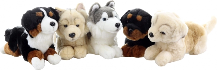 Ontdek een zachte vriend die al bij de eerste aanraking plezier brengt. Het pluchen hondje van 29 cm lijkt op een echt puppy, heeft geborduurde gelaatsdetails en een zachte vulling voor veilig knuffelen. Leverbaar in meerdere varianten afhankelijk van de voorraad, zoals een schattige husky, Berner Sennenhond, rottweiler en meer.