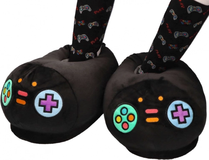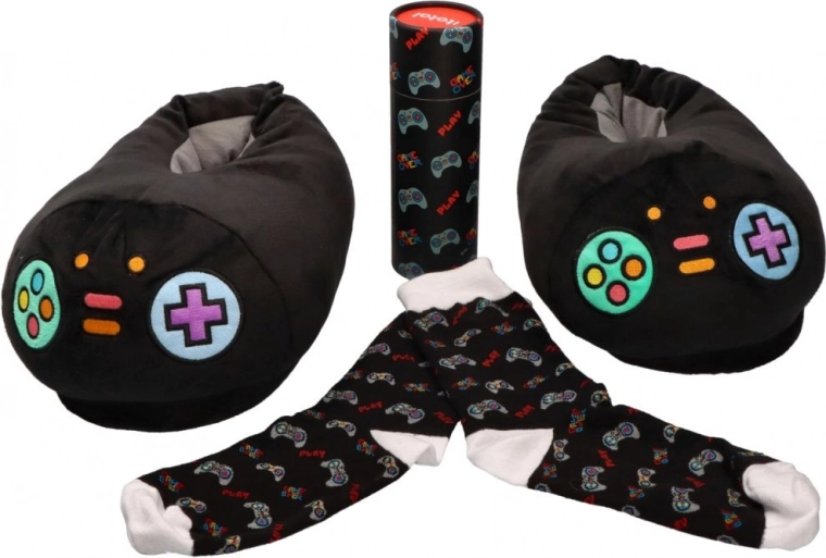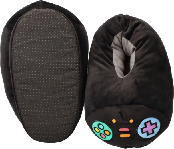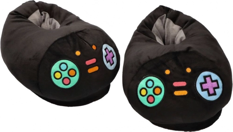 Wikkel je voeten in comfort met de originele Let's Play pantoffels. De zachte voering en warme pluche zorgen voor behaaglijkheid tijdens koude dagen, terwijl de kleurrijke knoppenborduursels doen denken aan retro gamecontrollers. Dankzij de anti-slip onderzijde voel je je zeker in huis, zelfs op gladde vloeren.