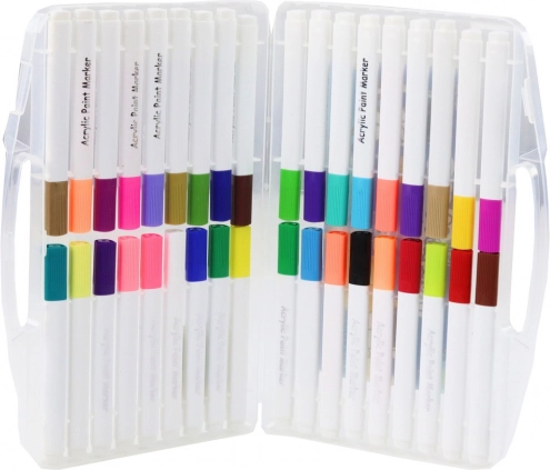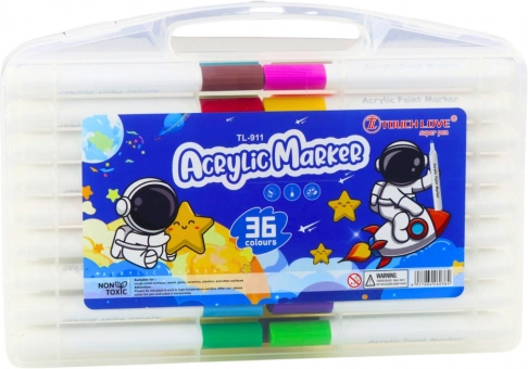 Set acrylstiften is het ideale hulpmiddel voor elke jonge kunstenaar en kunstliefhebber. Hoogwaardige stiften in 36 intense kleuren maken het mogelijk om uitzonderlijke artistieke en decoratieve projecten te creëren. Dankzij de acryl-inktformule zijn de kleuren bestand tegen vervagen en slijtage en dekken ze goed op diverse oppervlakken zoals papier, karton, hout, plastic en glas. De sterke pigmentatie zorgt ervoor dat elke tekening expressief en kleurrijk wordt, wat ze ideaal maakt voor zowel alledaagse schetsen als professioneel artistiek werk.