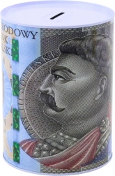 Stijlvolle metalen spaarpot met het motief van het Poolse bankbiljet van 500 PLN, helpt bij regelmatig sparen. Dankzij de stevige stalen constructie en het niet-openbare ontwerp weerstaat hij de verleiding om het geld te vroeg eruit te halen. Compacte afmetingen 16 × 12 cm, een gleuf voor munten én bankbiljetten en een decoratieve print maken het tot een geweldige toevoeging voor de kinderkamer, kantoor of op de plank.