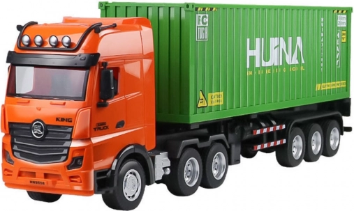 De RC-vrachtwagen met container van HUINA valt op door de precieze detaillering – de bestuurderscabine, spiegels en werkende lichten ogen geloofwaardig. De te openen container kan van de trekker worden losgekoppeld en de uitschuifbare steunpoten zorgen voor stabiliteit tijdens het stilstaan. Duurzame, kindveilige kunststof en rubberen banden garanderen een lange levensduur en comfortabel rijden.