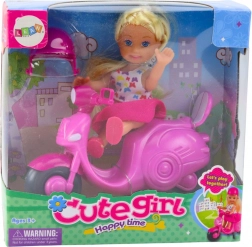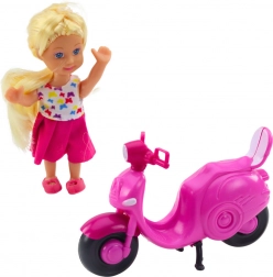 Het popje is 11 cm hoog, heeft lang blond haar en een schattige outfit. De scooter is gemaakt van duurzaam plastic en uitgerust met beweegbare wielen en spiegels. De set bevat ook een roze helm die zorgt voor veiligheid tijdens het rijden en extra realisme geeft.