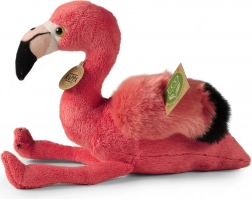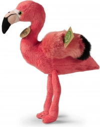 Deze pluche vogel heeft een felroze kleur met een zwarte snavel en is geschikt voor zelfs de jongste kinderen.