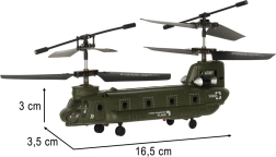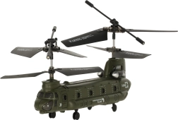 Het dubbelrotorprofiel en de militaire kleurstelling doen denken aan een transporthelikopter. Een uitstekende keuze voor fans van militaire techniek en beginnende piloten.