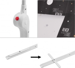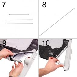 Installatie in enkele minuten – schuif de steunen simpelweg onder de matras en plaats het frame in de textiele hoes met netstof. Stabiele bevestiging zonder het bed te beschadigen.