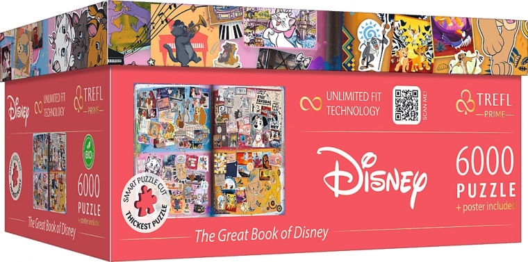 TREFL puzzel UFT Het Grote Disney-boek, 6000 stukjes (4×1500). Premium stukjes, UFT-verbinden van motieven, eenvoudig verplaatsen, bio-verpakking, afmeting 133,3 × 92,8 cm.