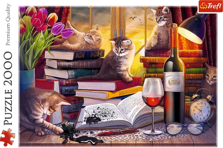 Geniet van ontspanning met de hoogwaardige puzzels van Trefl. Het motief Kattenavond met schattige kittens tussen boeken bevat 2000 stukjes en vormt na het leggen een afbeelding van 96,1 × 68,2 cm. Gemaakt in Polen van materialen van hoge kwaliteit en met speciaal gekalanderd papier voor gemakkelijker leggen en minder schittering.