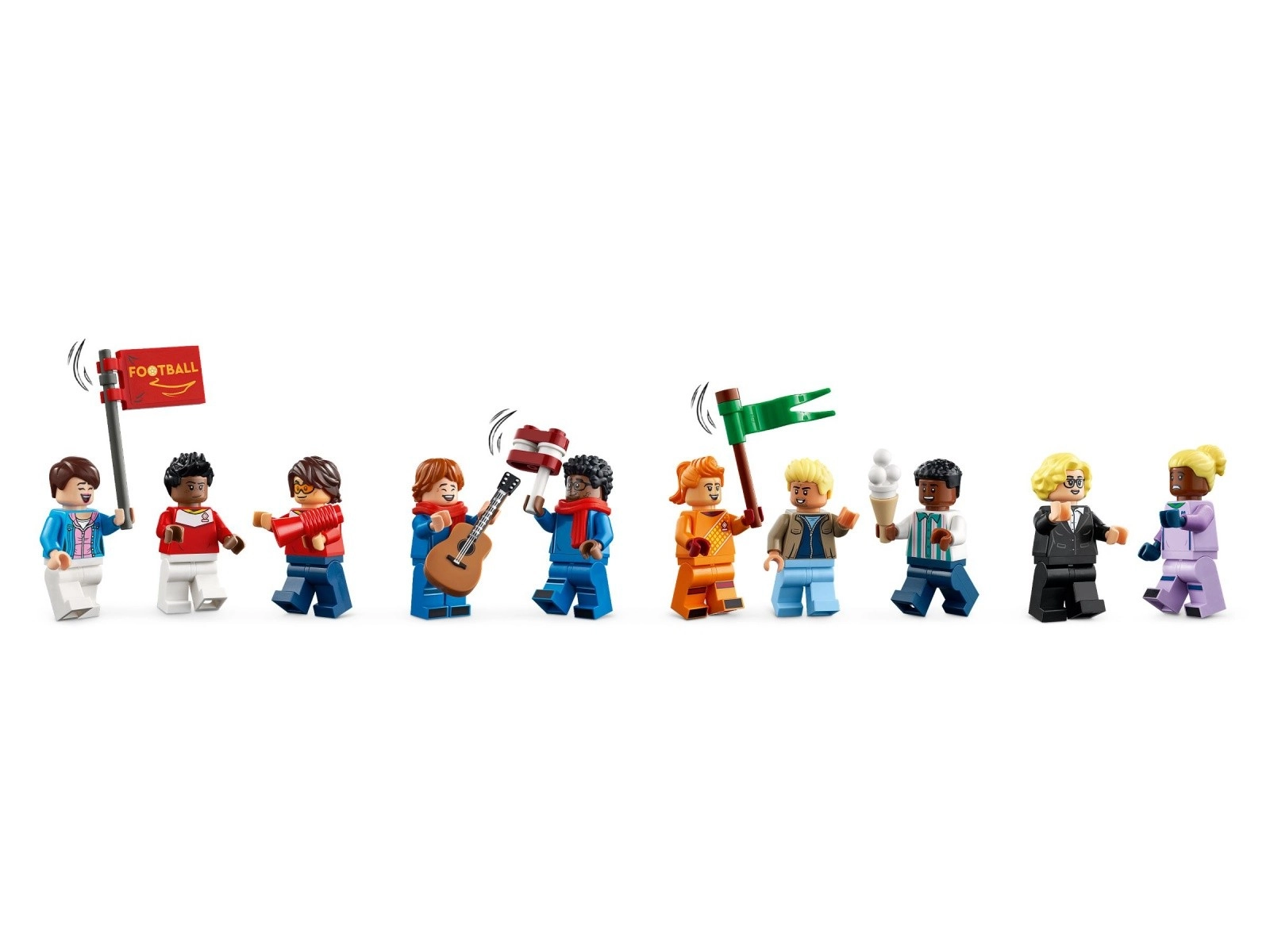 De set bevat 15 minifiguren die de diverse voetbalwereld vertegenwoordigen – waaronder iconen als Megan Rapinoe, Yuki Nagasato, Sam Kerr en Asisat Oshoala. Met de rijke accessoires bouw je een authentieke stadionsfeer en beleef je eindeloze scenario’s van aftrap tot trofeeviering.