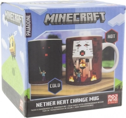 Stijlvolle keramische mok met MINECRAFT: Nether-motief met een inhoud van 300 ml, die van design verandert afhankelijk van de temperatuur van de drank. Voeg een hete drank toe en zie hoe iconische pixelelementen verschijnen. Ideaal cadeau voor fans, een originele toevoeging aan elke collectie. Niet geschikt voor vaatwasser of magnetron.