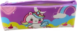 Het opvallende patroon met eenhoorn en regenboog in pastelkleuren maakt het etui aantrekkelijk voor kinderen.