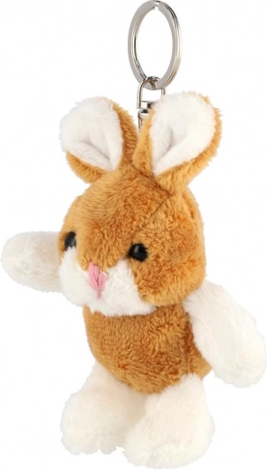 Schattig bruin-wit konijntje als pluchen sleutelhanger, ideaal voor sleutels, rugzak of handtas. Het heeft zachte, fluweelachtige haartjes, een compact formaat en een duurzame metalen ring voor eenvoudig vastklikken.