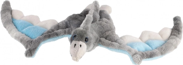 Deze grijze pluchen pterosaurus is ontworpen voor comfortabel knuffelen en volop creatieve pret. Dankzij de zijdezachte stof en lichte vulling ligt hij prettig in de hand, terwijl de brede vleugels de kinderlijke verbeelding prikkelen en de ontwikkeling van fijne en grove motoriek ondersteunen.