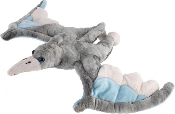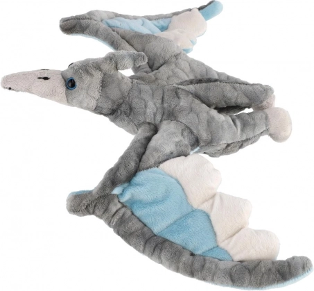 Deze zachte pterosaurus valt op door zijn gespreide vleugels in grijs met blauwe en lichte details. Hij is aangenaam pluizig, licht en ligt perfect in kleine handjes. Dankzij de zachte materialen is hij geschikt als eerste knuffel en wordt hij al snel een favoriete metgezel om mee te slapen en op reis te gaan.