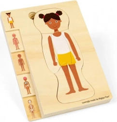 Ontdek het menselijk lichaam op een speelse manier met de meerlaagse houten puzzel van Bigjigs Toys. Elke laag toont van het skelet tot de organen en stimuleert STEAM-leren, fijne motoriek en logisch denken. Gemaakt van FSC®-gecertificeerd hout met niet-giftige verven. 26 stukjes, geschikt vanaf 3 jaar.