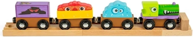 Ga op een griezelige rit met de Monsters-trein van Bigjigs Rail. De set bevat een locomotief, drie wagonnetjes met afneembare lading, twee houten rails en een eindbuffer. Geschikt om elke houten treinbaan uit te breiden en ideaal bij de Monsters-set.