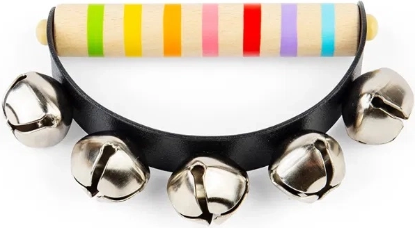 Ontdek de vreugde van ritme met jinglebells die ideaal zijn voor vroege muzikale vorming. De flexibele band met belletjes klingelt zacht bij elke beweging en helpt kinderen tempo en eenvoudige ritmes te herkennen. Het houten handvat voelt prettig aan en is aangepast aan de kinderhand.
