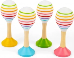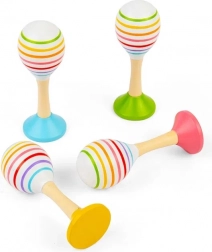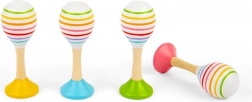 Beleef de eerste muzikale ervaringen met je kind dankzij de set van twee rumba schudballen van Bigjigs Toys. Ze produceren een zachte rammelende klank, hebben een speels gestreept design en ergonomische houten handgrepen voor kleine handjes. Gemaakt van FSC-gecertificeerd hout en afgewerkt met niet-giftige verven – een veilige keuze voor baby’s vanaf de geboorte.