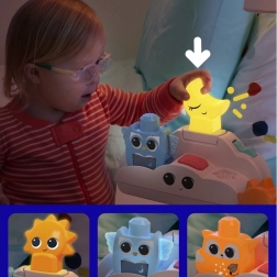 De avondmodus biedt kalmerende wiegmelodietjes, gedempte lichteffecten en een sterrenprojector voor prettig inslapen. De ochtendmodus laat de dag stralen met optimistische liedjes, natuurgeluiden en frisse lichtpatronen. Dankzij de eenvoudige bediening en robuuste blokken is de set ideaal voor peuters.